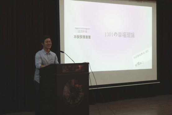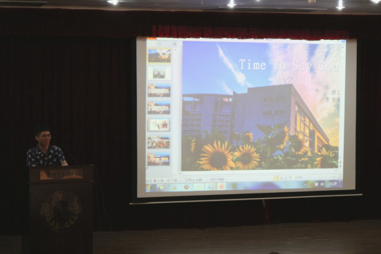 接着,外籍教师代表冈田重美老师与教师代表张晓东老师先后上台,以陪伴同学身旁的良师益友的身份,在回忆了与同学们共同度过的愉快时光后,给予了各位关于未来的忠告。在校生代表、来自日语1502班的项凌慧则作为后辈,对前辈们表示感谢与祝福。