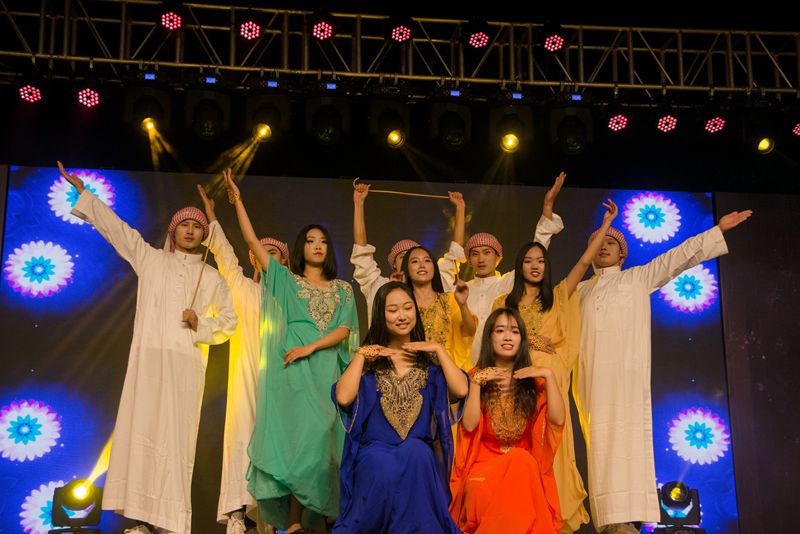 本次晚会中,国产自拍 女生身着浴衣,手握油纸伞,在动听音乐的伴奏下翩翩起舞,那月色下的动人倩影,让观众们感受到了日式舞蹈的温柔与美妙。而今年的阿拉伯舞蹈结合了甩头舞与男性传统舞蹈,显得更为热情奔放,欢快的节奏不禁让人眼前一新。这两种极具异域风情的舞蹈也让国产自拍 的特色得到了充分的展现。