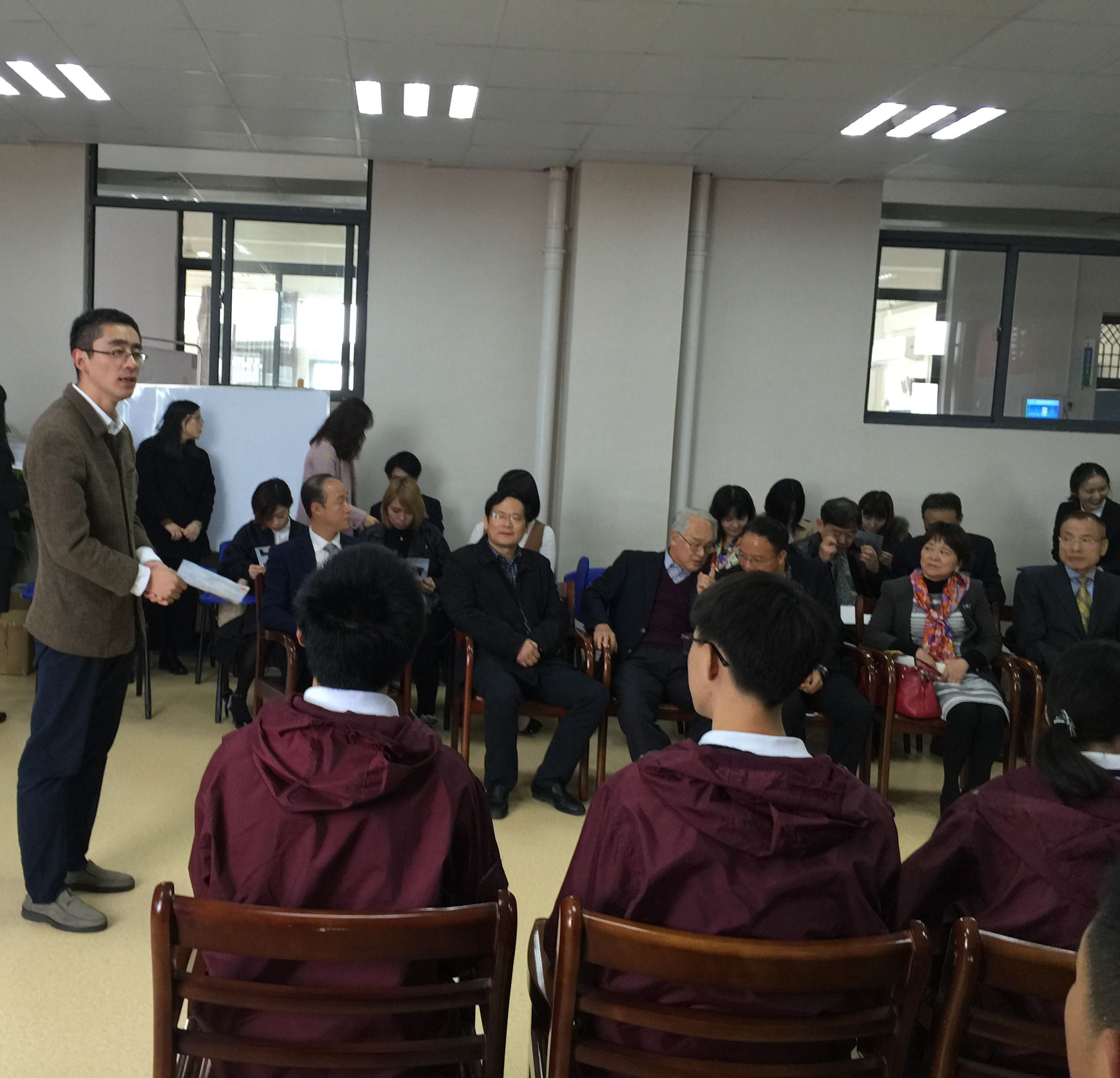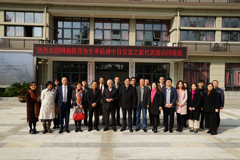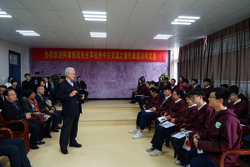 11月19日,前日本驻华大使阿南惟茂与国产自拍 师生代表团前往杭州余杭区文昌高级中学开展中日友好交流活动,参观互联网村、梦想小镇。国产自拍 师生代表团成员包括原学院党委书记郭爱昕、日汉翻译研究所所长贾临宇、研究生秘书欧阳知颖、东亚研究院谢咏以及外教冈田重美、松代章、服部美有、岩川司、预科班招生办公室范俏莲等老师以及国产自拍 留学生、十余名学生志愿者。余杭区教育局局长沈洪相、余杭文昌高级中学副校长郎慧娣及书记方仙来等热情接见了阿南先生与我方师生代表团。