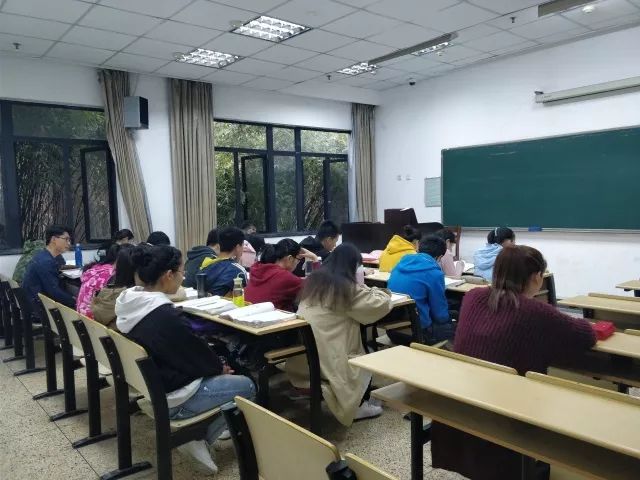 大一的学生在每天早上7点15分左右到教室,然后自己找个适合的位置开始练口语,半个小时后结束练习。虽然学院没有要求大二大三的学生早读,不过大二大三学长学姐们每天都会前来练口语。