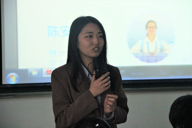 学生在职业选择,文本撰写等方面提供了专业指导,并鼓励在座同学,无论是否参赛,无论什么职业,都要努力成为更好的自己。老师认为参加这个比赛并不是为了最终的那一纸证书,而是在参加比赛的过程中,我们能够清楚地了解自己的性格和兴趣,从而更清楚地认识自己,知道自己想成为一个什么样的人,自己有多大的能力。 王歆玫老师曾获第九届浙江省职业规划大赛优秀指导老师。陈安怡曾获第八届浙江省大学生职业生涯规划与创业大赛C类创业类一等奖,第九届浙江省大学生职业生涯规划与创业大赛A类职业规划类本研组一等奖和最佳潜质奖,同时获“年度最佳职业规划之星”称号。