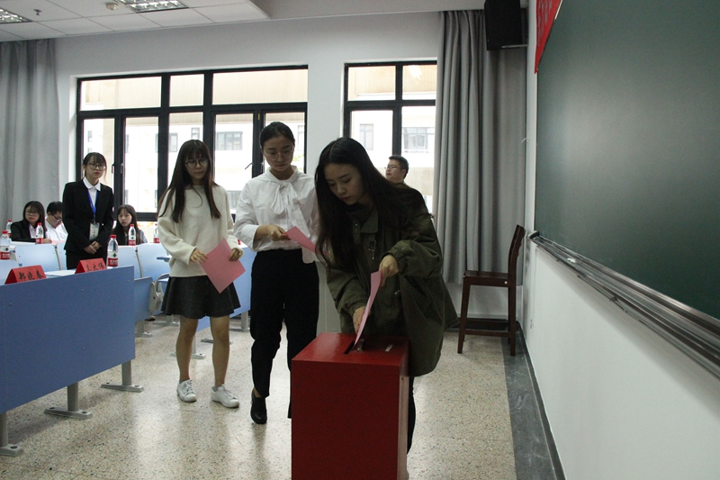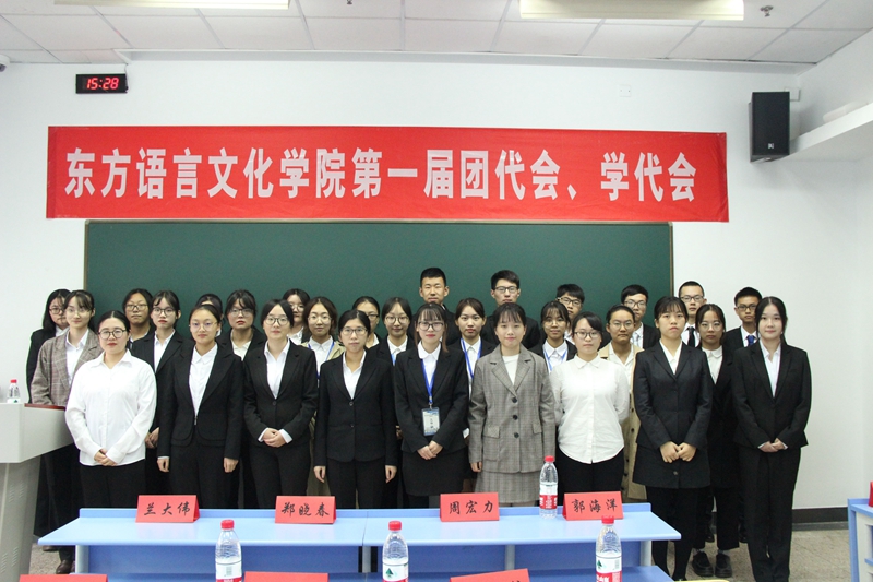 致辞完毕,大会讨论审议并通过了团代会、学代会产生办法说明,审议并通过了大会监票人、计票人名单。学生代表对各候选人进行了投票选举。计票工作结束后,兰大伟宣布了选举结果并宣布东方语言文化学院第一届团代会、学代会圆满结束。