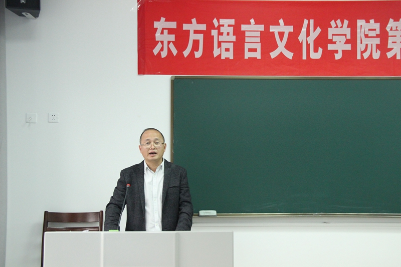 学院党委书记周宏力对全体人员进行了题为《以青春的担当,共创东语团学新辉煌》的讲话,其中,对学院团学组织提出了三点要求:第一,站位要高;第二,理念要新;第三、工作要实。同时,对学院团干、学干提出了四点希望:第一、希望大家进一步了解组织、明确职能、热爱团队;第二、希望大家进一步明确身份权力,学会担当奉献;第三、希望大家进一步增强自身能力素质,争创工作佳绩;第四、希望大家进一步培养问题意识,知难而进,推进工作。