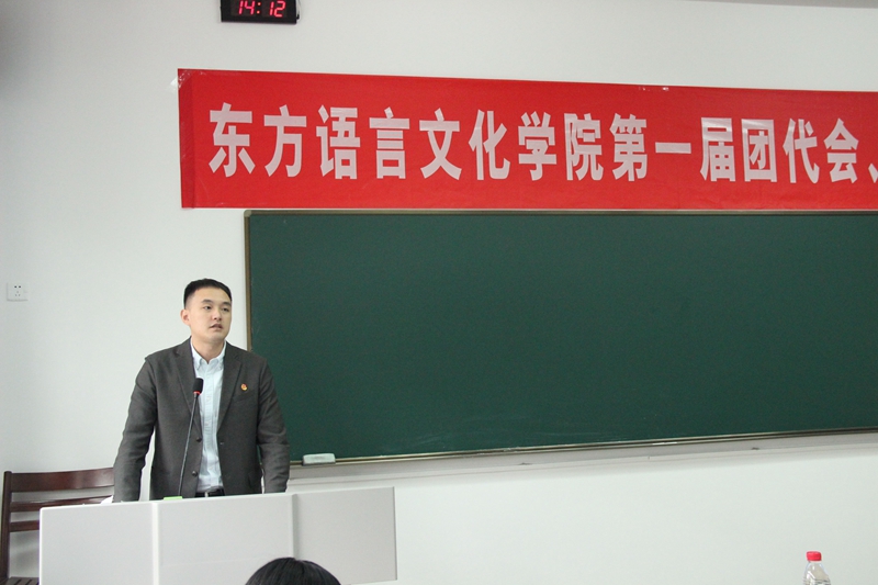 校团委副书记郑晓春对大会的召开表示了热烈的祝贺,并发表讲话表示本次会议是日本语言文化学院更名为东方语言文化学院之后举办的第一次双代会,并表示双代会将会成为由大学生参与的重要政治活动。希望同学们记住“为同学服务”的宗旨,让“责任”“奉献”“自律”常驻心间。以本次双代会为起点,坚定理想信念,在新时代建设的进程中书写无愧于时代的人生篇章。