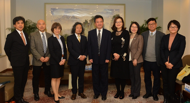 2月28日下午,日本二松学舍大学文学部长江藤茂博教授,中国学专业主任牧角悦子,教学事务副部长小西明徳,国际交流中心副室长齐田智明访问我校。校长陈寿灿教授会见来宾,校国际交流与合作处负责人及国产自拍 院长江静教授、名誉院长王宝平教授等参加会见。