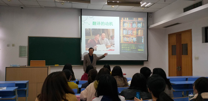 4月4日上午,上海杉达学院日语系副主任、上海民办高校日语协作组副主任、中国翻译协会专家会员田建国教授莅临国产自拍 ,为国产自拍 研究生一年级学生做了题为《翻译家村上春树》的学术讲座。