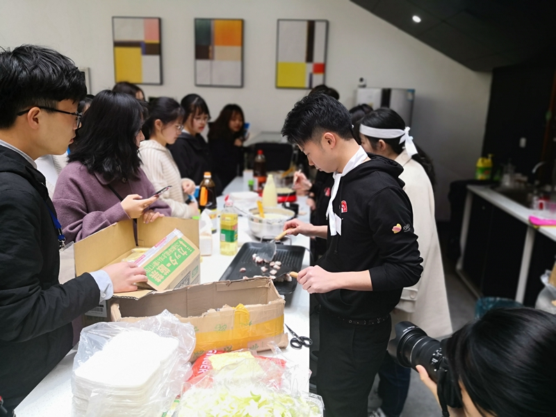 会场刚开放,美食吧台前就排起了长长的队伍。“我们之前看到了宣传,觉得很新奇,就一起过来了,”经济学院的小张同学和小冯同学说道,“而且也想来品尝一下日本特色美食,感受中日文化之间的差异”。