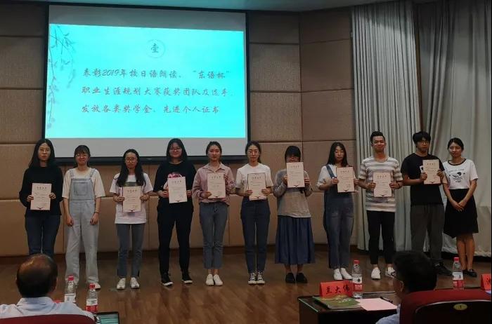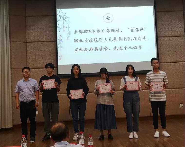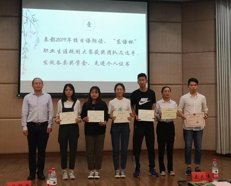 大会的第一项内容是颁发各类奖学金、先进个人证书以及对各类比赛的获奖选手及先进集体的表彰。由周宏力书记颁发国家奖学金证书、2019年院“东语杯”职业生涯规划大赛优秀奖证书,兰大伟老师颁发2019年校日语朗读比赛获奖证书,杨月燕老师颁发各类奖学金、先进个人证书。