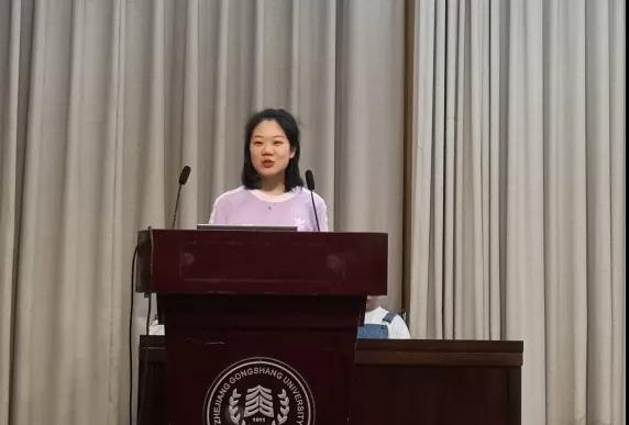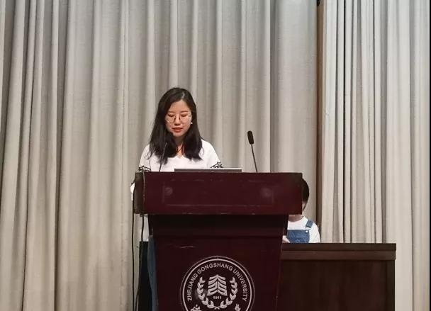 2019年中华全国日语演讲大赛华东赛区三等奖获得者日语1602班李舒迪同学作经验分享。她提到要打好日语学习的基础、积极参加与专业相关的活动以及分享了自己参加中华全国日语演讲大赛华东赛区大赛的历程。