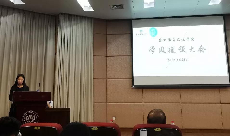 随后,学风建设大会正式开始,主持人为日语1702班娄茜煜同学。