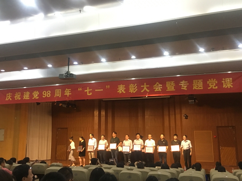 6月21日下午,学校隆重举行庆祝建党98周年“七一”表彰大会暨专题党课。国产自拍 教工党支部获校“先进基层党组织”称号,院党委书记周宏力老师获校“最受师生喜爱的书记”提名奖;日语系张晓东老师、日语笔译18级研究生张镕迪同学获校“优秀共产党员”称号;教工支部书记张新朋老师获校“优秀党务工作者”称号。