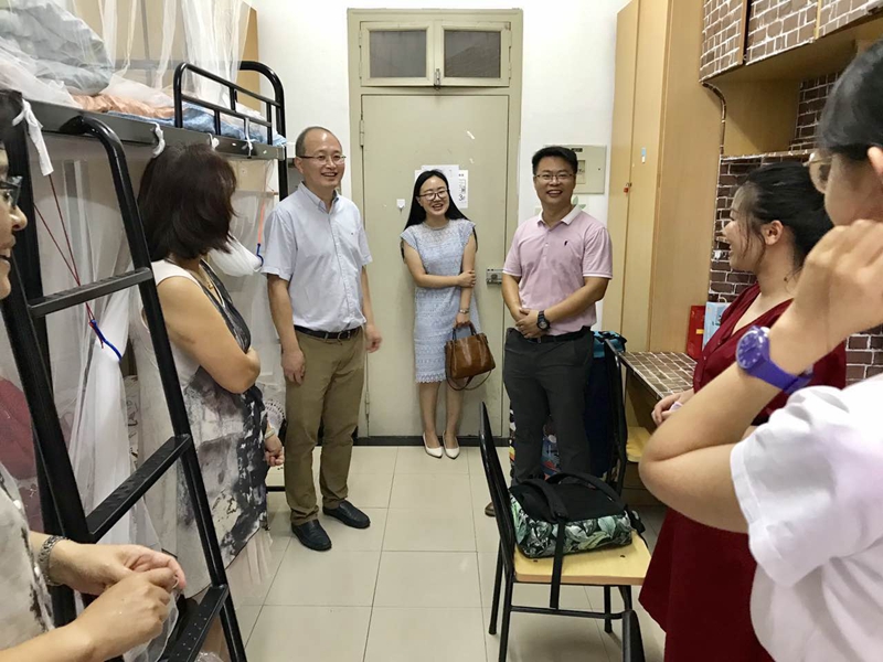 8月23日,2019级本科生新生报到日。下午3:30时左右,学院党委书记周宏力深入新生寝室走访看望2019级新生。学生工作办公室主任兰大伟、阿拉伯语言文化系教师梁盼盼、19级本科新生辅导员沈霄鹏陪同走访。