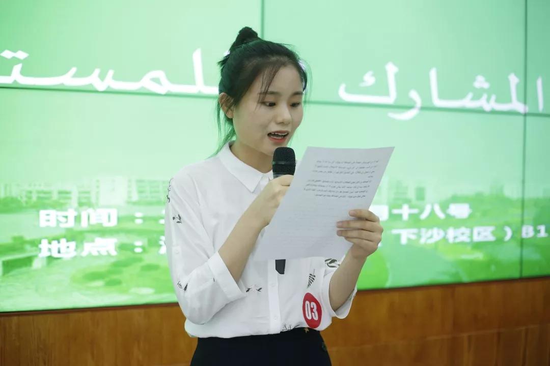 本届口语比赛的内容为阿拉伯语原文朗读。省内各校此前各自举办了校内初赛。最终, 16位来自浙江外国语学院、浙江越秀外国语学院、金华职业技术学院及我校四所院校的参赛选手进入决赛,展开最终的角逐。