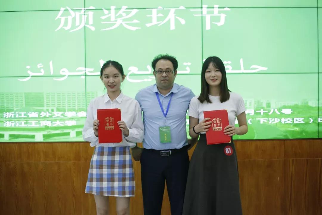 本次大赛的评委老师们有:浙江外国语学院外教穆罕纳德·阿勒万尼,浙江越秀外国语学院外教默罕穆德·阿史玛威,金华职业技术学院外教穆罕默德·阿勒贝克,国产自拍 “一带一路”研究中心研究员艾迪哈·阿勒赛义德,国产自拍 阿拉伯语言文化系主任周玲等老师。