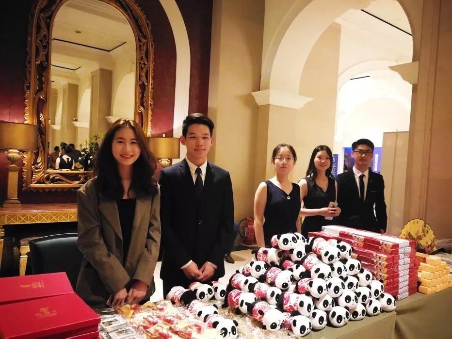 当天傍晚,他们早早坐车来到贝鲁特菲尼西亚酒店。宴会厅宽敞而明亮,一个个大中国结把会场的气氛渲染得喜气洋洋……在使馆工作人员的安排下,同学们在入口处向与会嘉宾发放具有鲜明中国特色的纪念品,如熊猫玩偶、折扇、青花瓷图案的方巾、如意造型的U盘、介绍中国的纪录片光盘、《习近平谈治国理政》、《今日中国(阿文版》杂志……