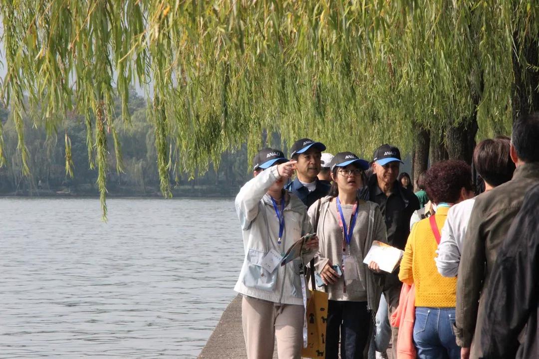 清晨的西湖游人尚稀,暖阳如新。尽管是初次相遇,但在全长6.5公里的徒步过程中,志愿者们一边陪同徒步,一边热情地向日本友人们讲解西湖美景、交流有趣话题。