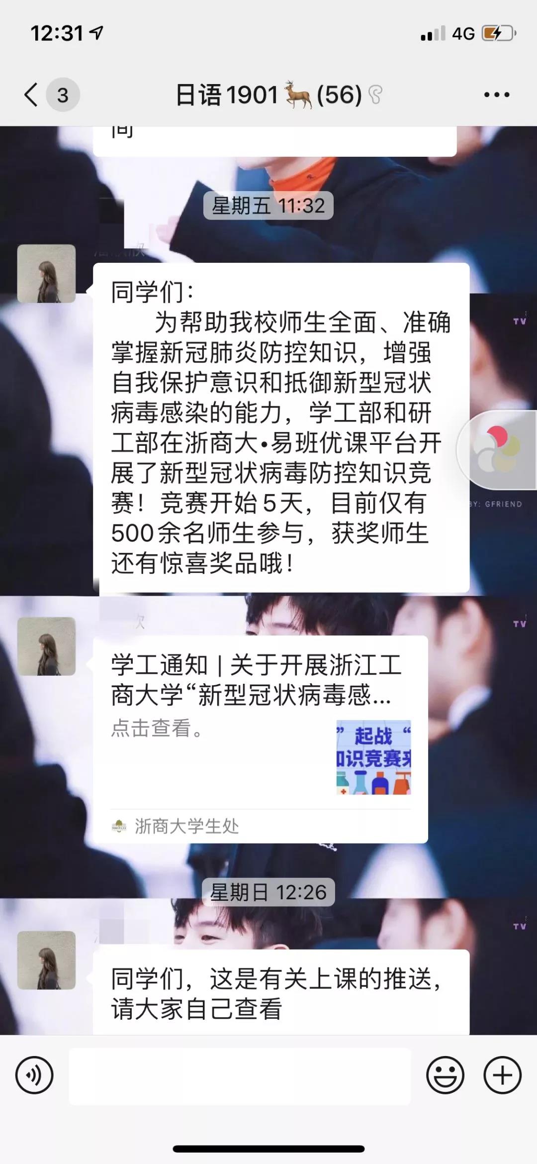 班长及时转发通知并积极鼓励同学们