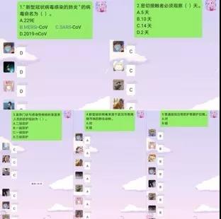 团支书给大家出了5道比较简单的与疫情相关的题目,这不仅给此次活动带来了乐趣,而且还巩固了同学们的疫情知识和提高了同学们的疫情防控意识。