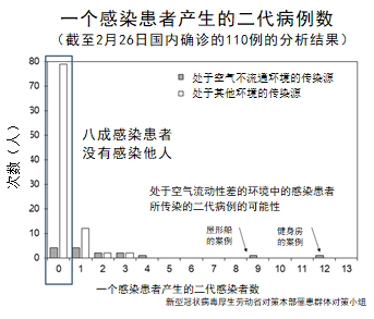在许多案例中,大多数新型冠状病毒感染患者几乎没有使得周围的人都感染,但还存在一个感染者传染给多人而感染扩大的案例(例如屋形船和健身房)。但若是存在,就会扩大范围,感染到很多人。同时,部分地区已经产生小规模感染群体。