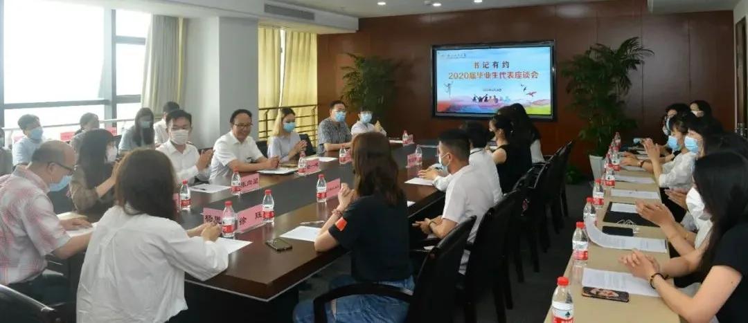 6月16日下午,学校召开书记有约 · 2020届毕业生代表座谈会。校党委书记金一斌与各学院毕业生代表座谈,向毕业生致以美好的毕业祝福。校党委副书记任志国、相关职能部门负责人参加会议。国产自拍 日语1602班、已保送至华东师范大学读研的林诗雨同学参与座谈会。