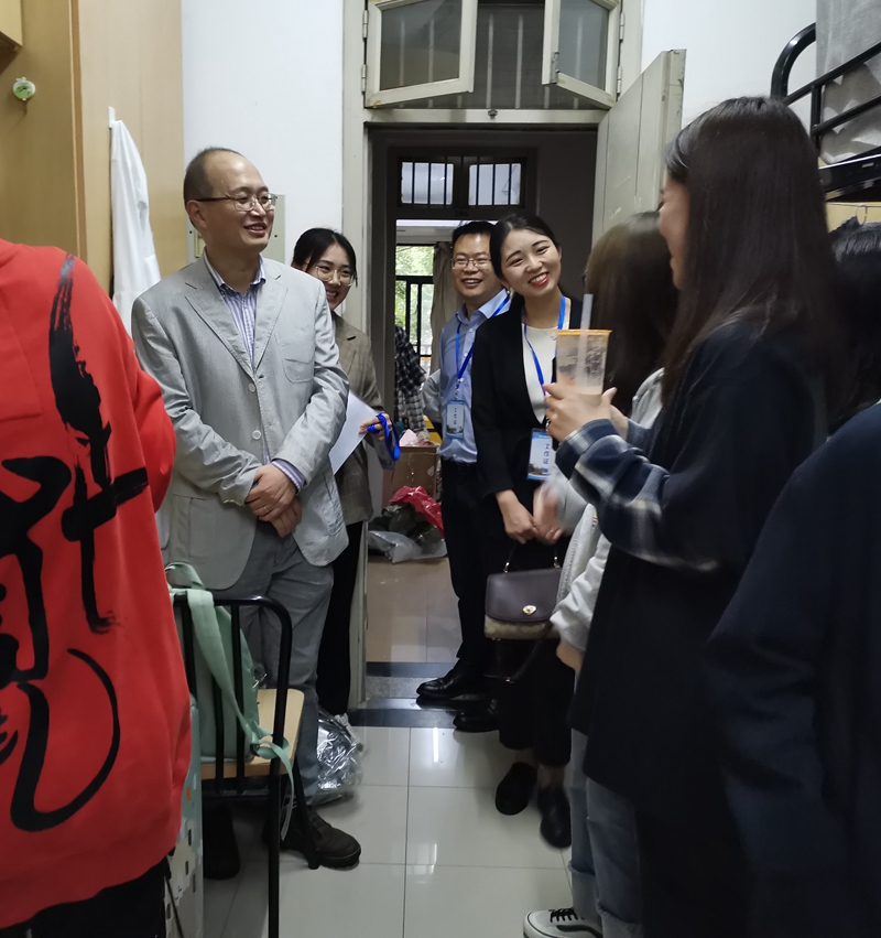 周书记一行首先来到金沙港生活区研究生寝室楼。在宿舍里,周书记详细询问同学们来自何处,鼓励同寝室成员要相互关照,本省的同学要照顾好外省室友,让他们感受到同学间的热情,外省的同学也要尽快自我调整适应环境。学院领导的关切问候让学生们倍感亲切。