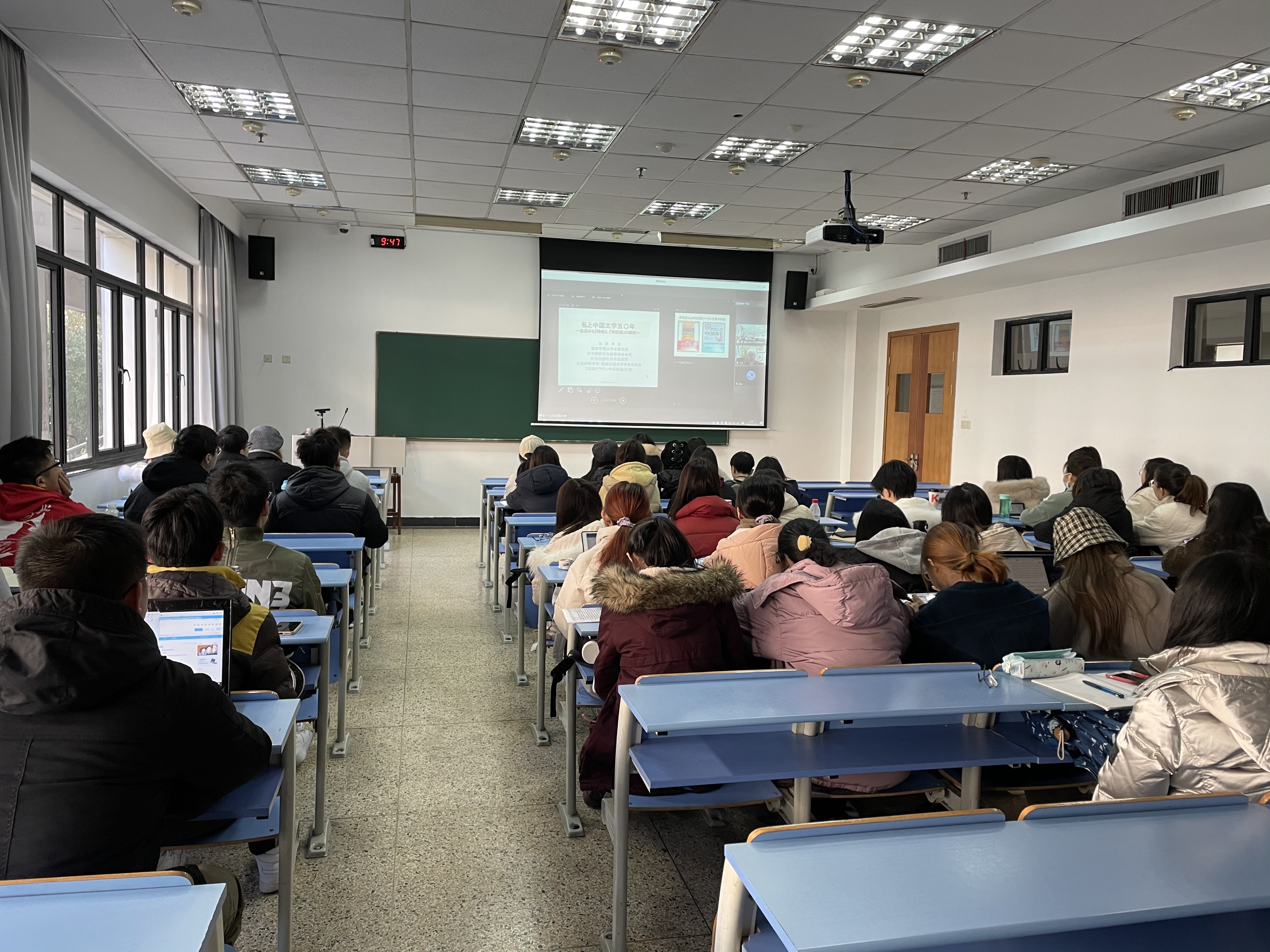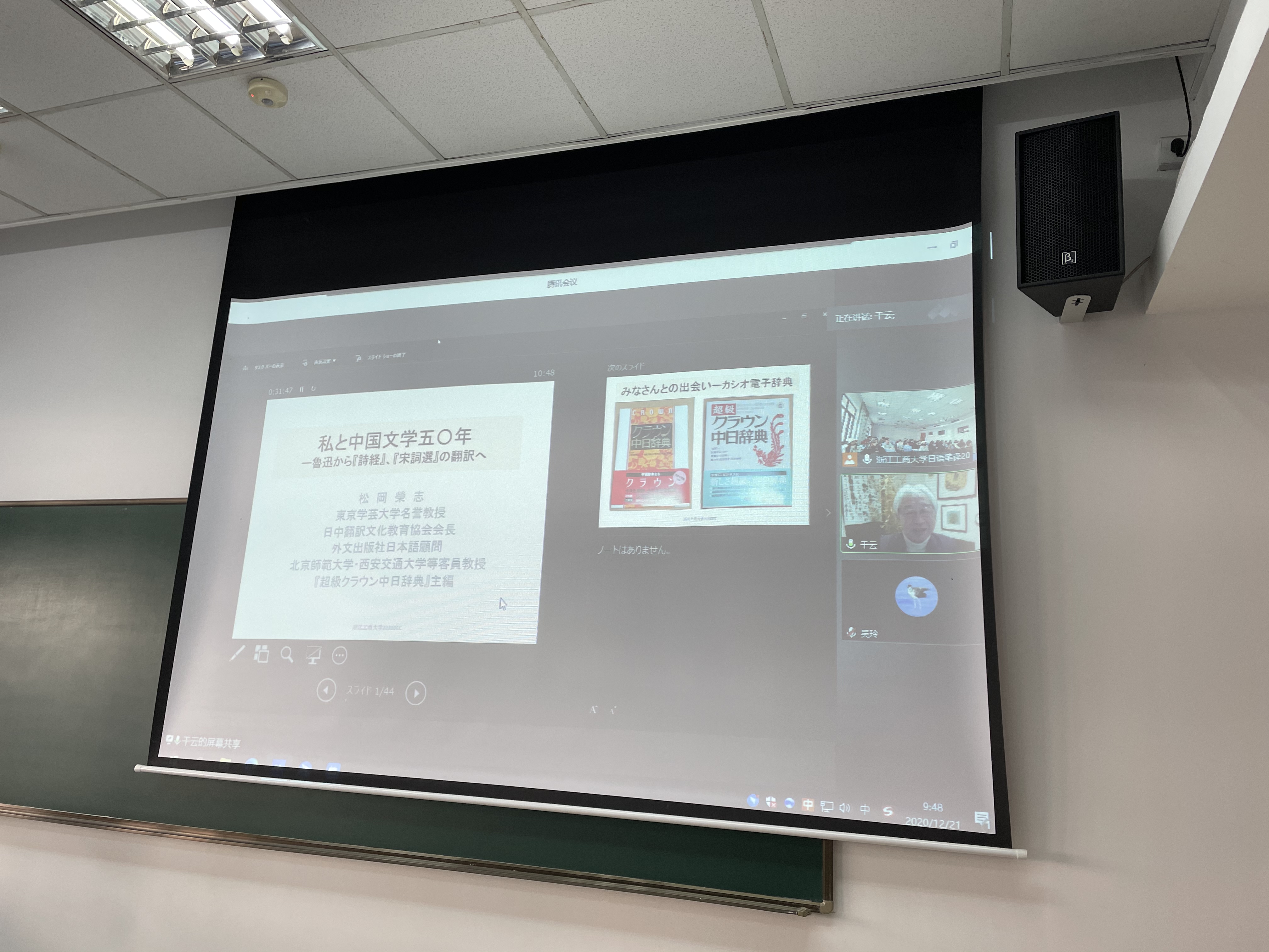 12月21日上午,东京学艺大学名誉教授、日中翻译文化教育协会会长松冈荣志应国产自拍 邀请,通过腾讯会议做了一场题为“我与中国50年——从鲁迅到《诗经》《宋词选》的翻译”的精彩讲座。讲座由院长助理兼日语系主任陈红老师主持,日语笔译研究生及线上师生聆听了本次讲座。
