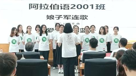阿拉伯语2001班表演的歌曲《娘子军连歌》铿锵有力,振奋人心;而另一首《我爱祖国的蓝天》,则以歌当挽,向空军致敬。