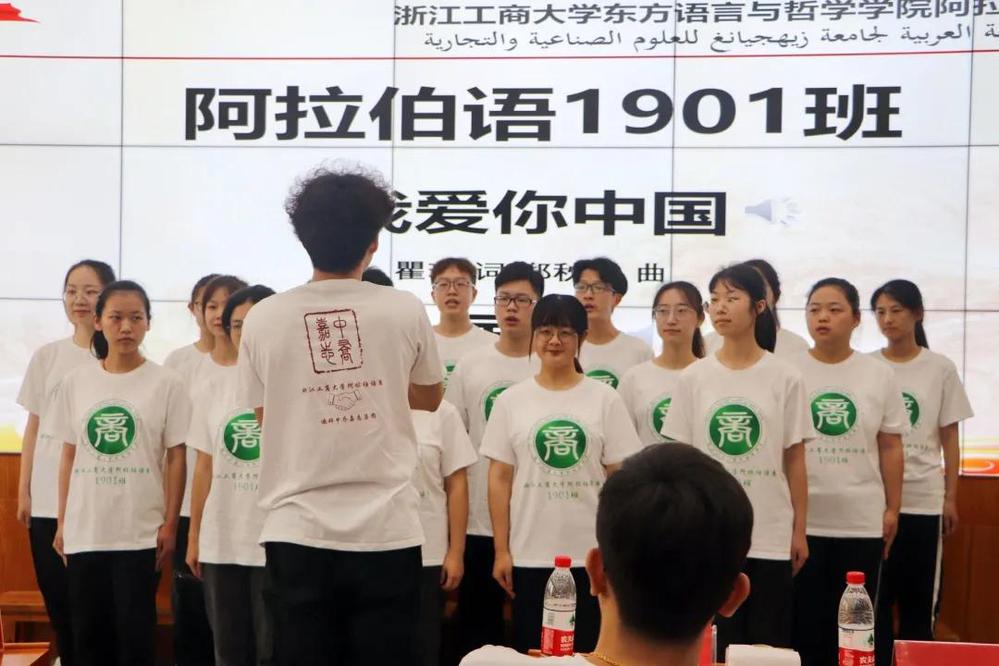阿拉伯语1901班带来歌曲《我爱你,中国》和《祖国》。歌曲虽然质朴无华,但他们却唱出了动人心魄的激情。