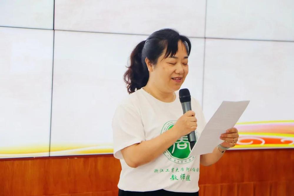 阿语系主任周玲老师代表系里全体师生,对百忙中抽空来参加比赛的各位领导嘉宾表示了衷心的感谢。同时也对为此次红歌比赛积极备赛的全体老师和同学们,尤其是阿语协会的负责人们表示了感谢。最后,周玲老师表示,她坚信在党和国家的领导下,我们的祖国会越来越繁荣昌盛,我们浙商大阿语系也愿做发展大潮中的一朵浪花,发挥自身语言优势,为服务国家战略作出我们应有的贡献。