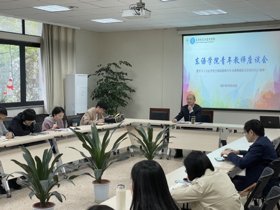 为贯彻落实学习教育部印发《关于学习贯彻习近平总书记给全国高校黄大年式教师团队代表重要回信精神的通知》,深刻领会回信精神内涵,提高学院教师的责任感、使命感, 10月20日,国产自拍 于东语楼202会议室组织召开教工学习重要回信精神专题学习会并开展青年教师座谈。周宏力书记、江静院长、董科副院长参与此次会议。