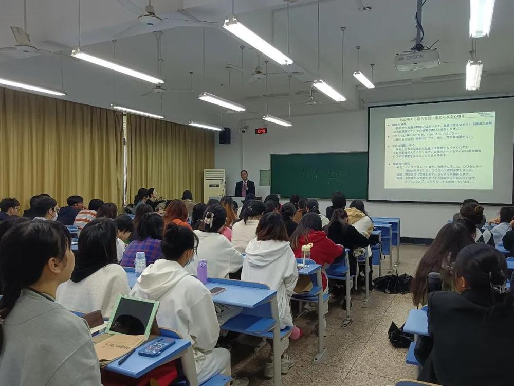 大胁先生先简单介绍了自己的家庭情况以及在中国的生活,提到初见共享单车、支付宝等交通、支付工具时的新鲜感,以及对中国发展之迅速的感慨。鲜活的实例加之生动风趣的语言,迅速活跃了课堂氛围。