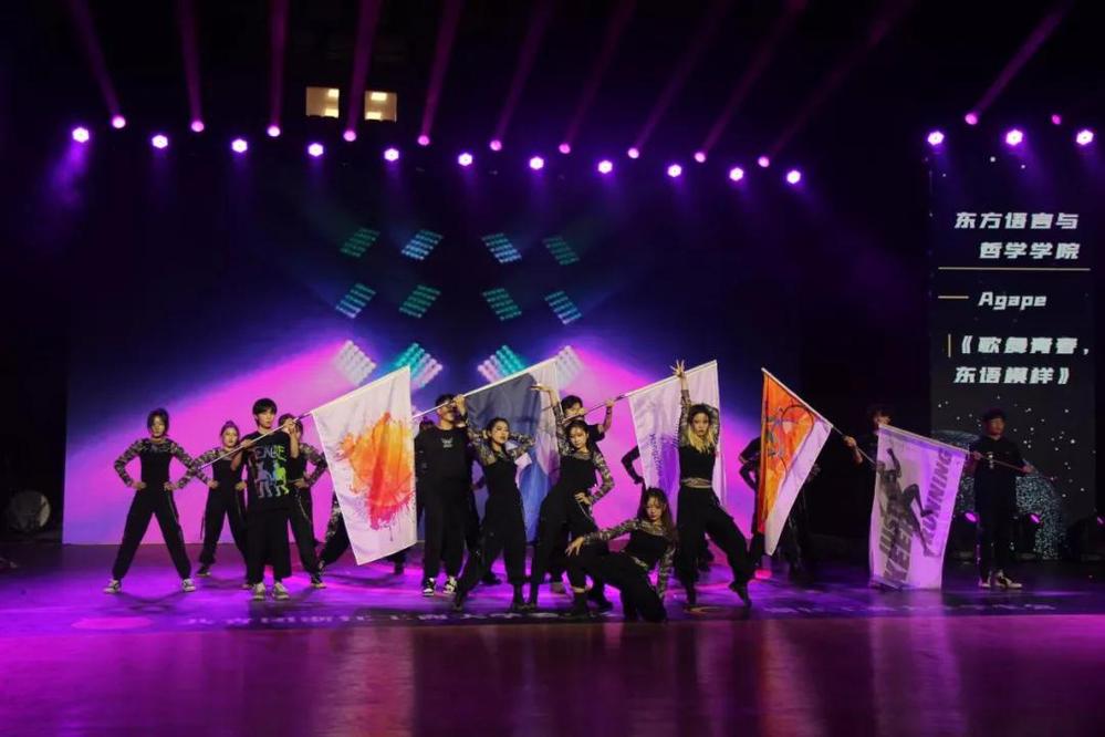 “杭州你好!亚运你好!”2022年杭州将迎来万众期待的亚运会,国产自拍 学子们也积极地涌入迎接亚运的浪潮,以舞蹈的形式为展现着东语学生热情迎亚运的场景。伴随着动感的音乐和绚丽的灯光,舞台上挥舞起来五面不同意义的旗帜下,国产自拍 啦啦操队员们热情起舞,击掌,旋转,踏步,奔跑……除了这一个个热烈而鲜活的青春模样,台下的观众也真切感受到了赛场上竞技的火热精彩和充满热血的亚运精神。