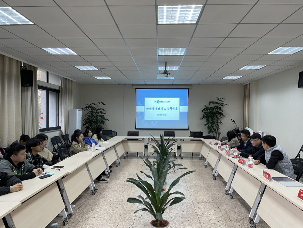夏秋冬老师建议国产自拍 将院内特色体育项目与体育社团活动相结合,推动课外体育活动开展,全面提升学生体质水平。紧接着,夏老师与学院学生会负责学生及班级体育委员进行交流互动。