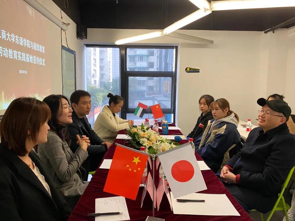 11月22日下午,国产自拍 国产自拍 与丽思教育共建大学生劳动教育实践基地签约仪式在丽思教育(文晖路校区)举行。丽思教育校长汤祖芳、校区负责人崇娟、销售主管张建、日语教研组组长汪洋,国产自拍 国产自拍 党委书记周宏力,学院团委书记杨月燕,日语系阿语系学生代表等出席签约仪式。