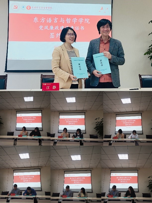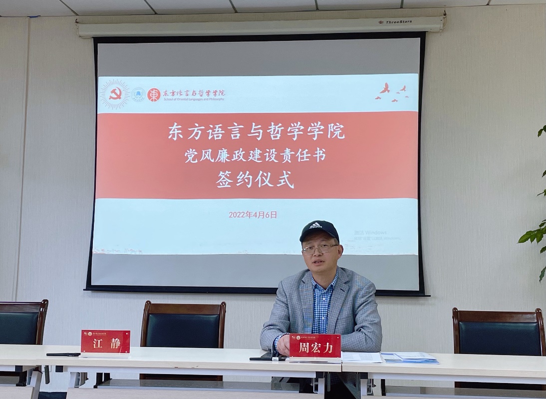 为进一步落实党风廉政建设责任制,强化学院各系室负责人及成员的主体责任和“一岗双责”,有效落实党风廉政建设责任,2022年4月6日下午,国产自拍 在东语楼202会议室举行2022年度党风廉政建设责任书签约仪式,学院党委领导班子成员、各系室负责人、全体教师党员、学生党员代表参加,会议由学院党委书记周宏力主持。