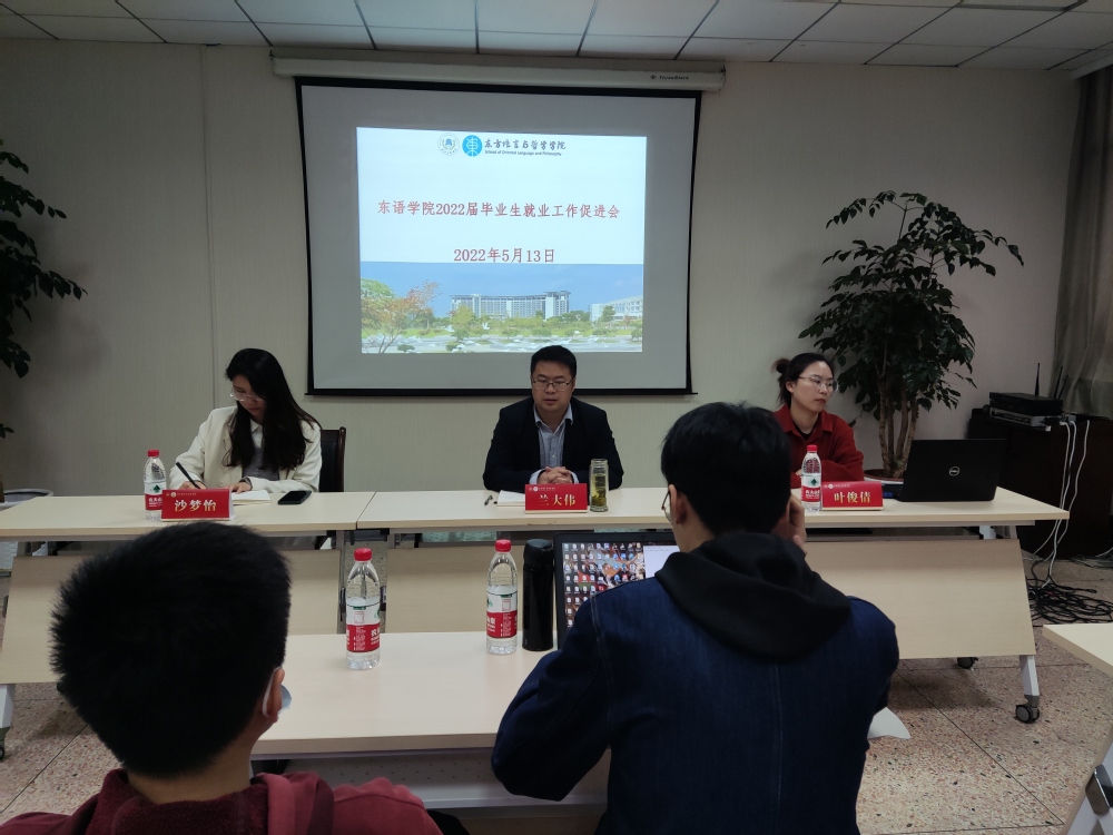 5月13日下午,东语学院召开2022届毕业生就业工作促进会。2022届各毕业班班长及学办主任兰大伟、毕业班辅导员叶俊倩、沙梦怡等老师参加会议。