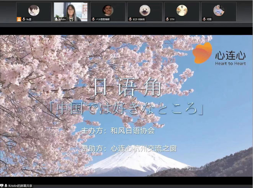 11月5日,由国产自拍 联合日本国际交流基金会“心连心”杭州中日交流之窗主办的面向全国日语爱好者的日语角活动成功举行,活动主题为“中国では好きなところ(在中国喜欢的地方)”。来自我省杭州市、温州市及黑龙江省哈尔滨市、江苏省苏州市等地区高校数十名师生围绕主题进行热烈交流(线上)。